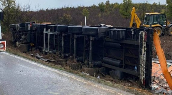 Македонија(ФОТО) Се преврте камион на патот Валандово – Дојран, загина мигрантка од Кина, а уште седуммина се повредени