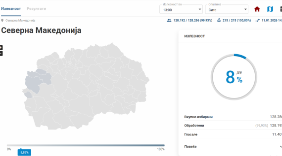 МакедонијаДИК: Излезеноста до 13 часот е 8,89 отсто, на едно избирачко место во Гостиварско не се гласа поради лошите временски услови