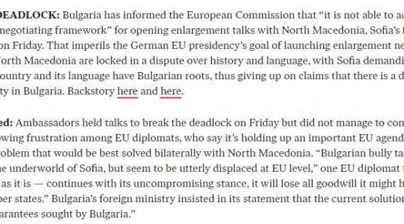 Македонија„Политико“: Насилните тактики на Бугарија се функционални за подземјето, но не и на ниво на ЕУ