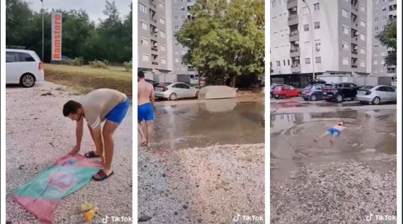 (ВИДЕО) На плажа во Аеродром – креативна критика за поплавените улици