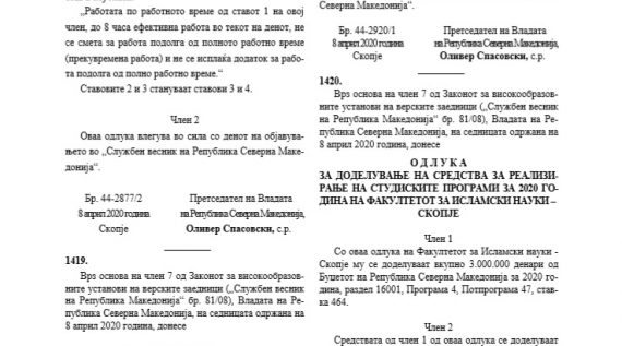 МакедонијаВладата им додели 120 000 евра на Православниот богословски и на Факултетот за исламски науки