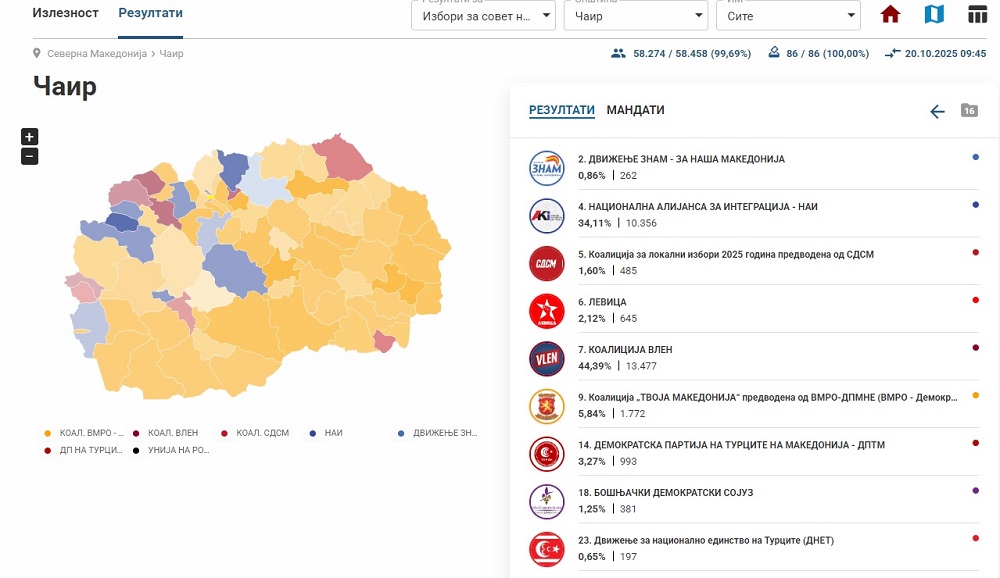 Битка за Чаир: Меџити освоил 2 300 гласа повеќе од советничката листа на ВЛЕН, Османи околу 1 900 повеќе од листата на НАИ