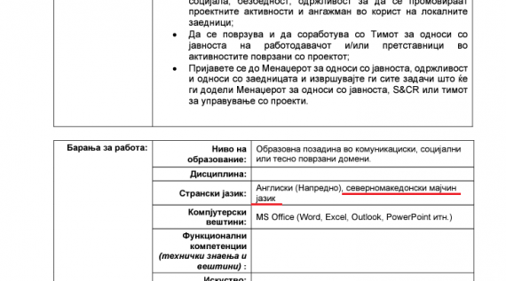 Познавање „северномакедонски мајчин јазик“ како критериум на еден од огласите за вработување од „Бехтел и Енка“, предочи ИДЧПД