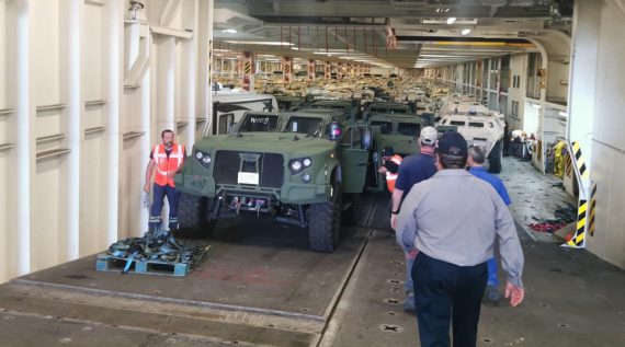 (ФОТО) Петровска: Во Солун пристигна првата пратка нови американски лесни оклопни возила за македонската армија