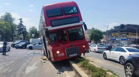 (ФОТОГАЛЕРИЈА) Автобус на ЈСП се качи на жардиниера кај „Мавровка“