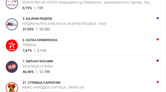 Според ДИК, Јовановски има освоено 8 784 гласа или 48,52 отсто, а Дехари – 3 667 гласа...