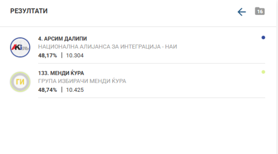 Од обработените гласови од 121 избирачко место (вкупно се 167), Димитриевски освоил 10 751 глас, додека Стојковски 9...