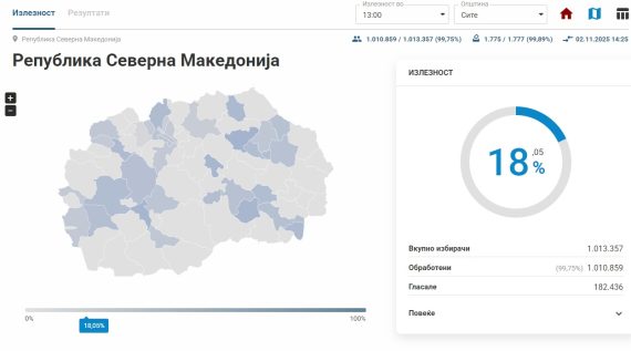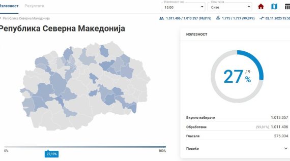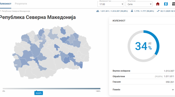 Најголема излезеност на ниво на државата до 17 часот има во Општина Конче (64,44 отсто), а од...