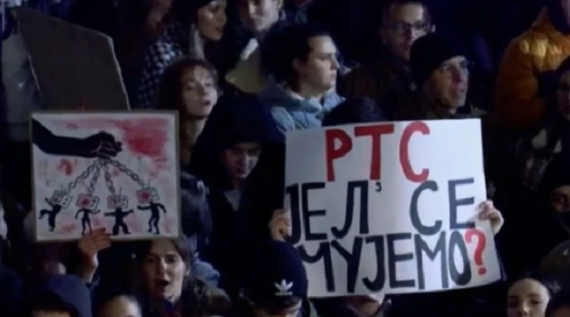 Студентите на протест пред зградата на РТС во Белград: „Наше право е да знаеме сѐ“