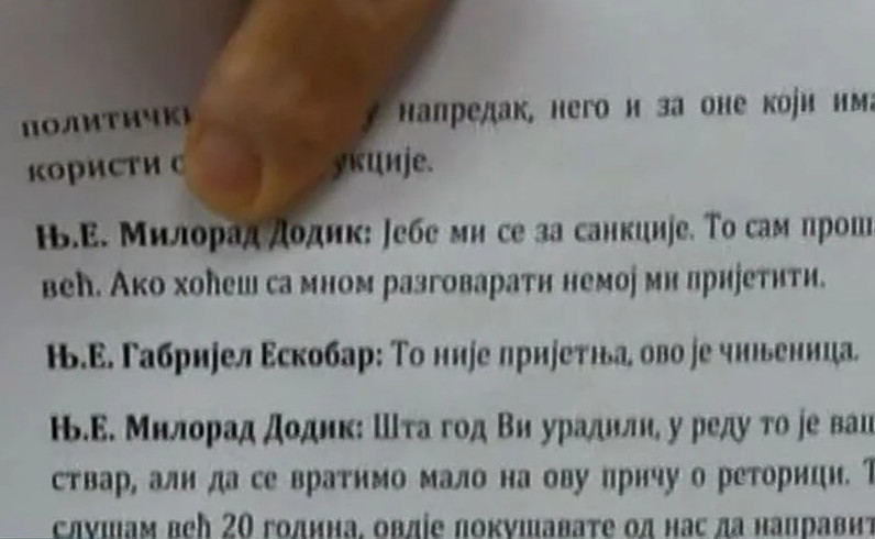 Додик објави стенограм од разговорот со Ескобар: Не ми е грижа за американските санкции