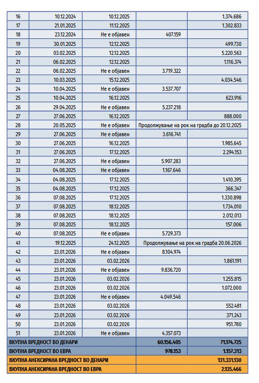 Вредноста на основниот договор со анексите е зголемена за 2,1 милион евра, односно за 32 во однос на првично договорената сума, што е спротивно на Законот за јавните набавки, кој овозможува зголемување од максимум 20 отсто.