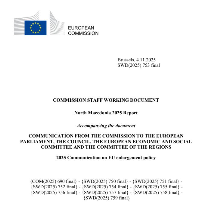 се наведува во Извештајот на ЕК за С Македонија за 2025 година.