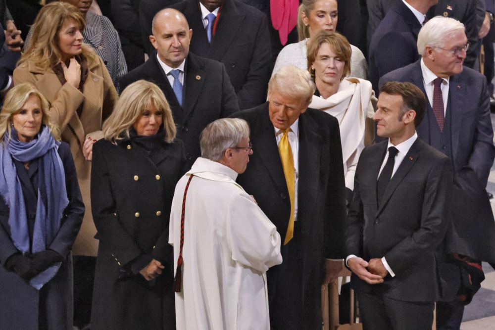 Во својот кус говор пред присутните, францускиот претседател Емануел Макрон ѝ заблагодари на нацијата и на сите оние кои ја спасија и помогнаа во обновата на катедралата.