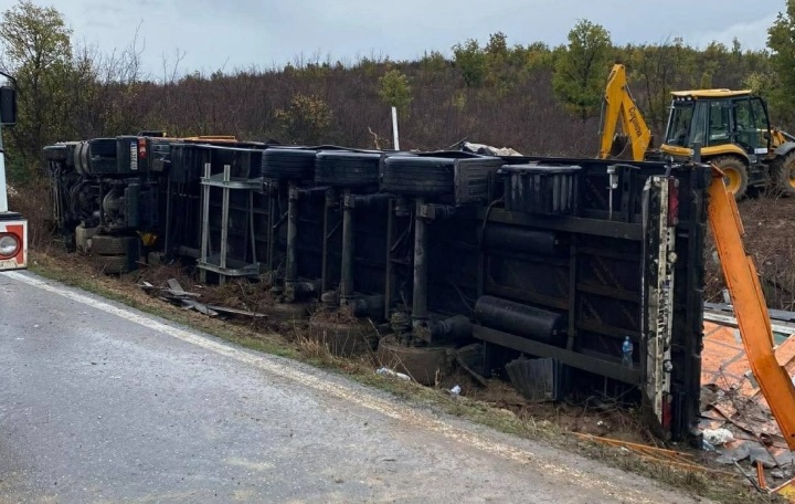 (ФОТО) Се преврте камион на патот Валандово – Дојран, загина мигрантка од Кина, а уште седуммина се повредени