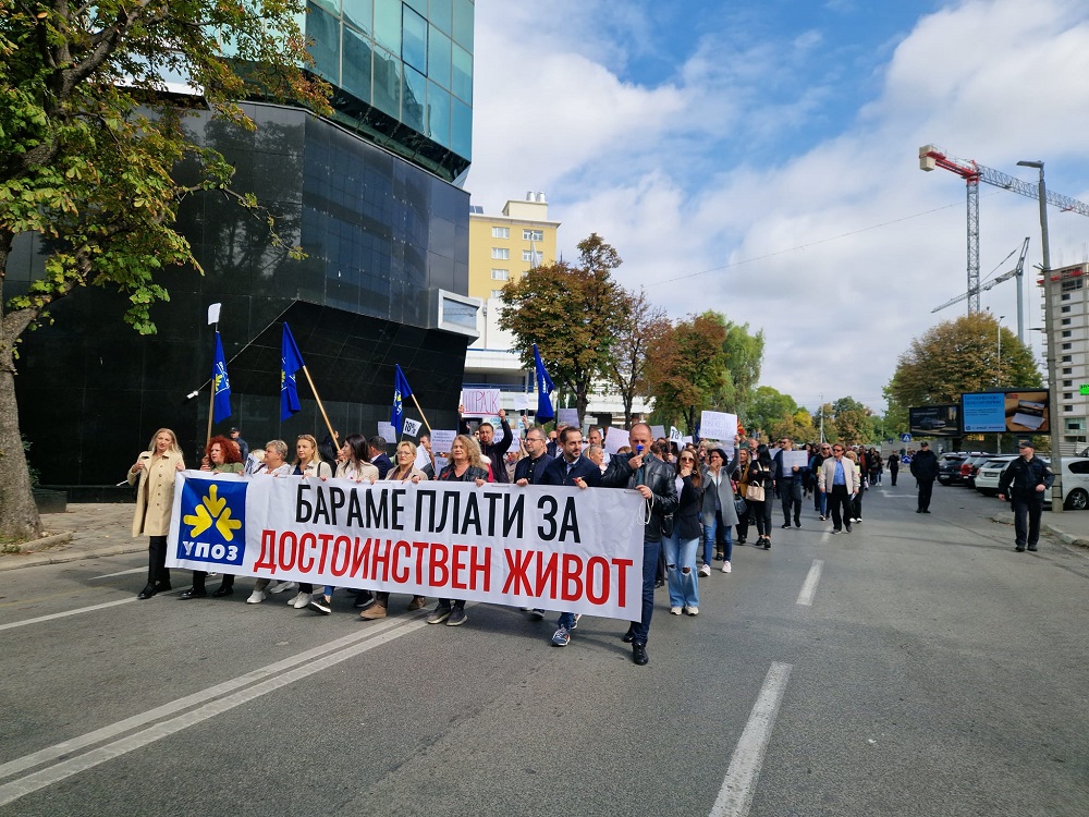 Околу 300 вработени во јавнообвинителските служби од целата држава денеска излегоа на штрајк во Скопје од каде што ѝ порачаа на Владата или да седнат на преговори уште денеска или од утре штрајкот ќе стане поригорозен. Синдикатот на работниците од управата, правосудните органи и здруженијата на граѓани (УПОЗ) остануваат на барањата за покачување на платите за 78 отсто и враќање на додатоците на плата од 35 отсто.