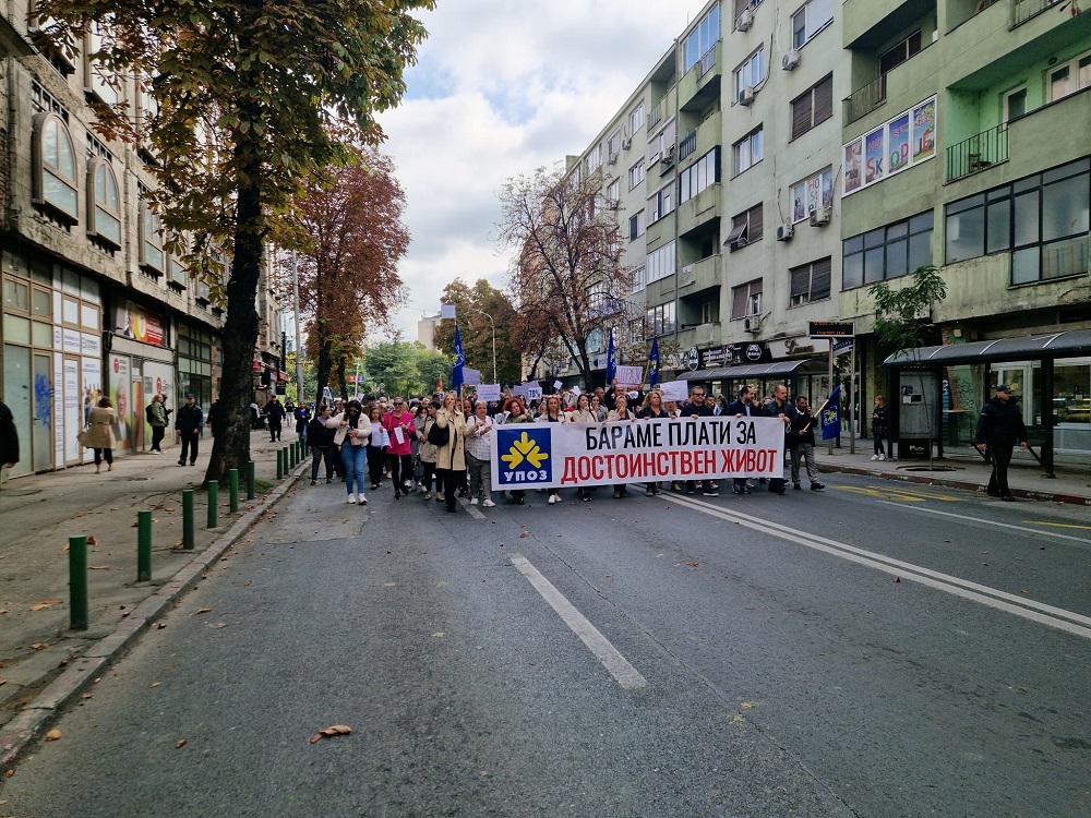 Околу 300 вработени во јавнообвинителските служби од целата држава денеска излегоа на штрајк во Скопје од каде што ѝ порачаа на Владата или да седнат на преговори уште денеска или од утре штрајкот ќе стане поригорозен. Синдикатот на работниците од управата, правосудните органи и здруженијата на граѓани (УПОЗ) остануваат на барањата за покачување на платите за 78 отсто и враќање на додатоците на плата од 35 отсто.