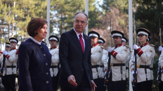 (ФОТО) Сиљановска-Давкова со највисоки почести го пречека претседателот на Албанија, Бајрам Бегај