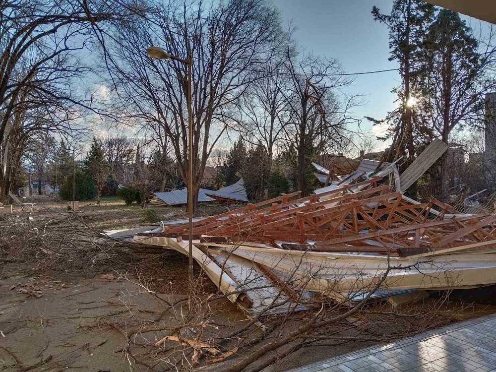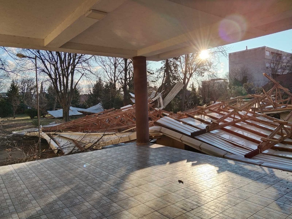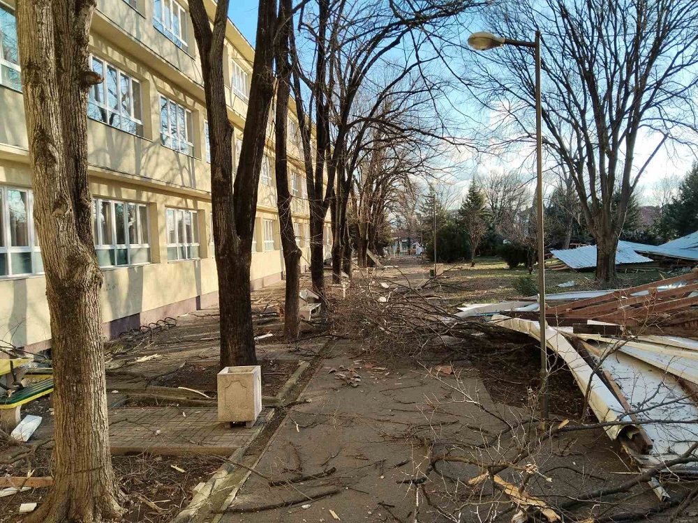 Поради силен ветер летна лимената конструкција од покривот на СОУ „Јосиф Јосифовски“ во Гевгелија. Случајот, како што информираат од Центарот за управување со кризи (ЦУК), е пријавен на единствениот број за итни повици 112.