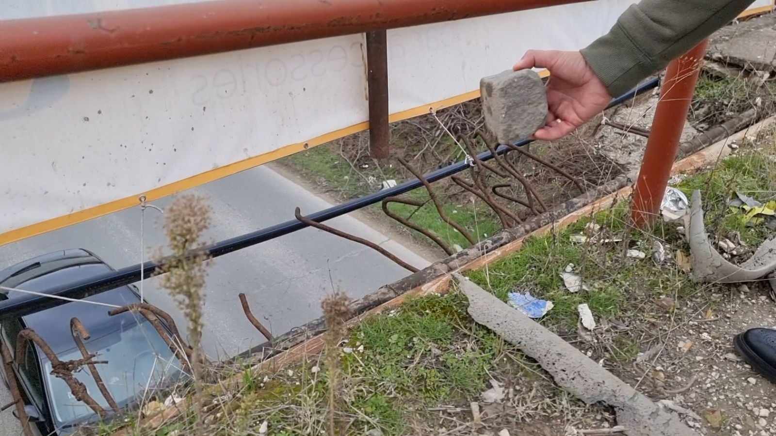 „На овој мост се јавува една опасност за граѓаните, тоа се овие камени гранитни коцки од патот коишто се расфрлени и кои најверојатно излегуваат од самиот пат. И покрај моето укажување, во повеќе наврати, повторно можам да ги забележам на самиот агол од мостот. Возилата коишто се движат по овој мост прават силни вибрации. Коцките се само на 30-40 сантиметри од работ на мостот и може да паднат долу на улица. Доколку коцка падне врз возило коешто минува под овој мост, некој може да биде убиен“,