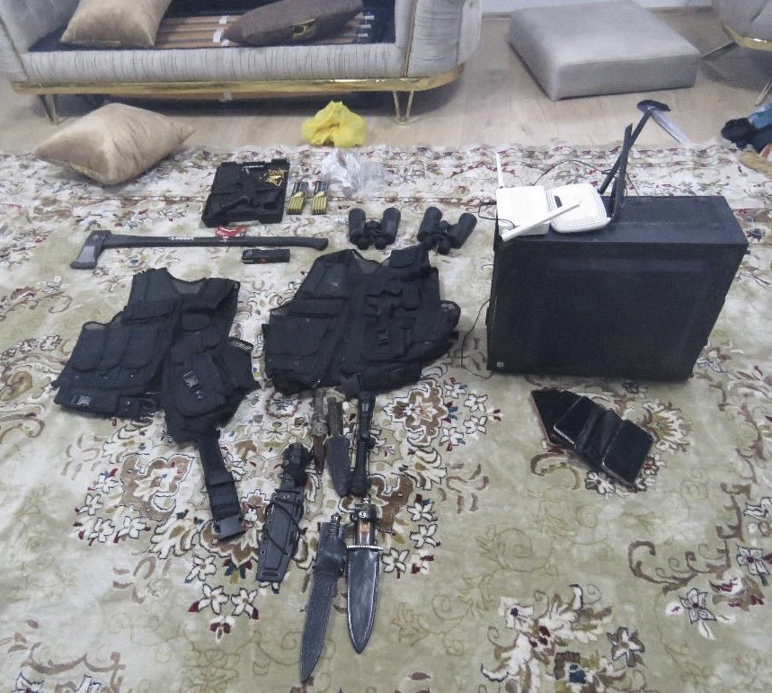 „Кај осомничениот се пронајдени и одземени секира, пет ножа со различна должина, телескоп, седум мобилни телефони ‘ајфон’ и компјутер. Исто така, од таткото на осомничениот е одземен пиштол за кој поседува дозвола и повеќе парчиња муниција. Останатото пронајдено оружје – пиштол и автоматска пушка, дедото на осомничениот ги поседувал без дозвола и за него е поднесена кривична пријава до ОЈО Тетово за кривично дело недозволено изработување, држење, посредување и тргување со оружје или распрскувачки материи“,
