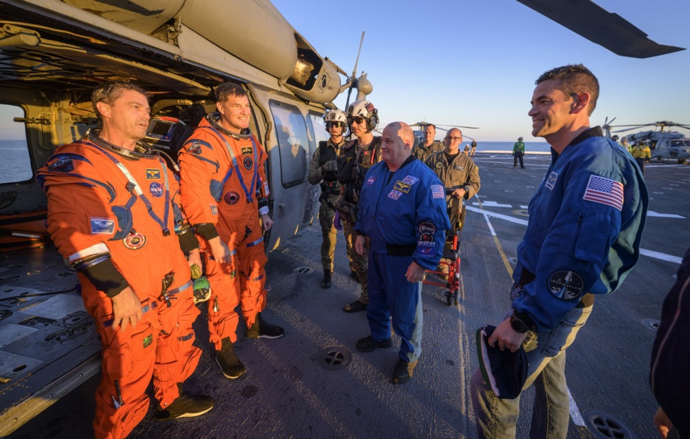 Потоа екипажот беше извлечен од Орион и пренесен со хеликоптер на американската морнарица до воениот брод каде астронаутите беа подложени на медицински проценки пред враќањето на копно и летот до вселенскиот центар на НАСА во Хјустон.
