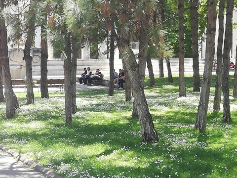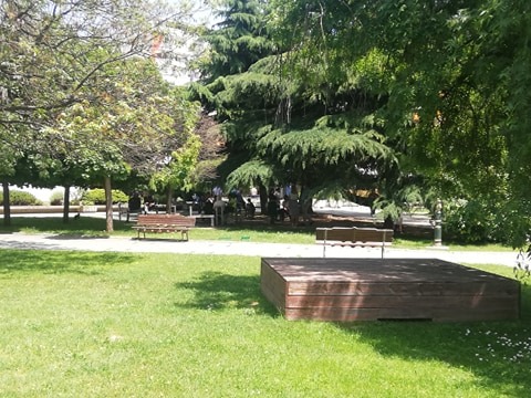 Во паркот, на клупите забележителни се групирањата на повозрасните лица, на вработените во продавниците во ГТЦ и на родители со деца кои го користат топлото време за престој надвор.