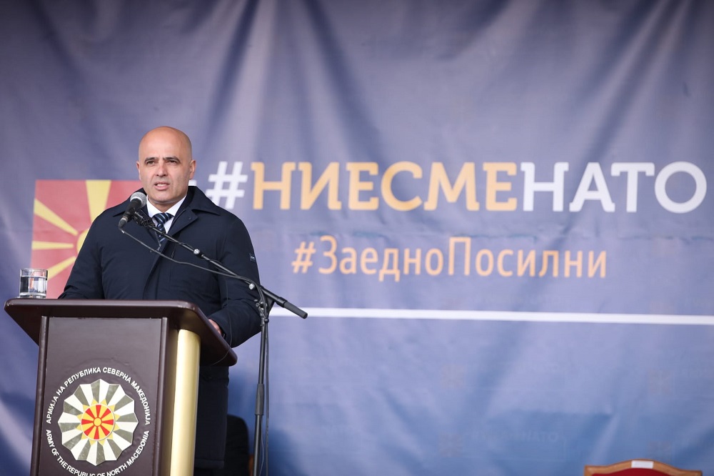Северна Македонија на 27 март ја запечати својата безбедносна иднина. Момент по кој нашата стабилност не може да биде доведена под знак прашалник од никој. И од таа точка можеме да чекориме само напред, силно и забрзано, порача премиерот Димитар Ковачевски на централната церемонија во касарната „Илинден“ во Скопје по повод три години од членството на државата во НАТО.