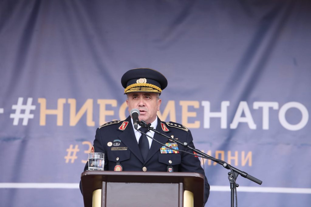 „Со континуирана одлучност, тридецениска напорна работа и посветеност успеавме да ја оствариме и најбрзата воена интеграција во НАТО, цел која ја постигнавме за 19 месеци од нашето полноправно членство. Успешното изодување на пристапниот пат е резултат на трудот, кој го вложија сите генерации наши припадници кои посветено следејќи ги препораките на Алијансата, ги применуваа стекнатите искуства и научени лекции од меѓународните операции и воени вежби за достигнување на потребните НАТО-стандарди“,