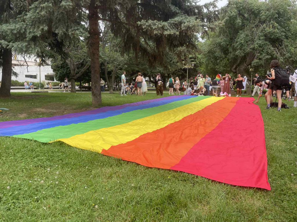 Паркот „Жена борец“ е почетна точка на учесниците на годинешната Парада на Гордоста, која денеска под мотото „Гласни и горди“ се одржува во Скопје.