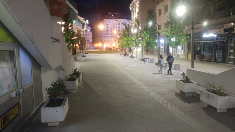 Отворени се само трафики и семкарници, а ретко кои од минувачите носат заштитни маски. Сепак, во споредба со сликте од вечерните часови во последните два месеца, раздвиженоста оваа вечер е очигледна.