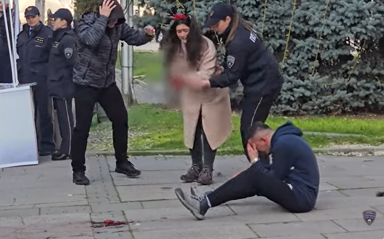 Показна вежба на учениците од средното скопско училиште „Владо Тасевски“ се одржа денеска на плоштадот „Македонија“, каде преку реална симулација се прикажаа повреди од несоодветна употреба на пиротехнички средства. Оваа активност се спроведува во рамките на превентивната кампања на Министерството за внатрешни работи (МВР) – „Сигурни празници, без употреба на пиротехника“. На настанот присуствуваше министерот за внатрешни работи Панче Тошковски заедно со директорката на Универзитетската клиника за пластична и реконструктивна хирургија, д-р Јасмина Георгиевска-Павловска, и генералниот секретар на Црвениот крст, Саит Саити.