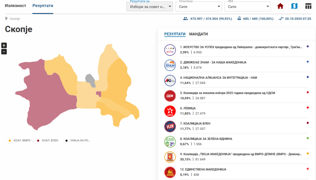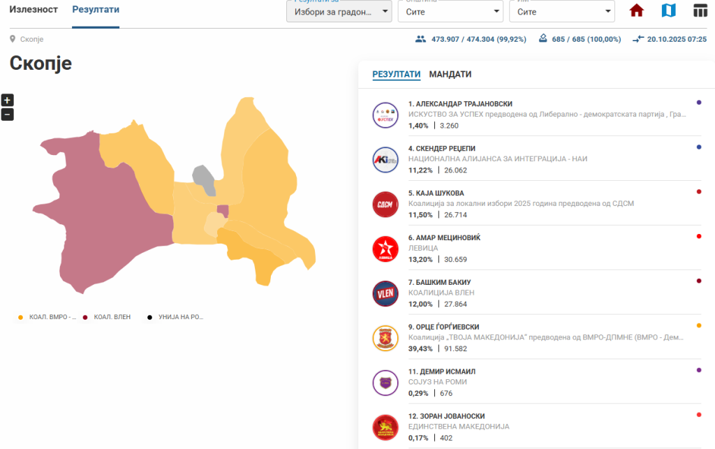 Ѓорѓиевски и Мециновиќ одат во вториот круг за избор на градоначалник на Скопје, Шукова заврши четврта