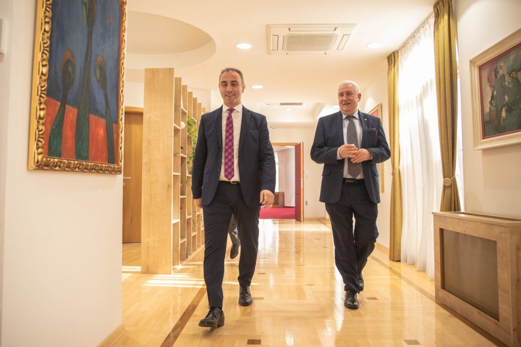 Првиот вицепремиер и министер за политички систем и односи меѓу заедниците, Артан Груби, денеска оствари работна средба со амбасадорот на Република Албанија во Скопје, Фатос Река.