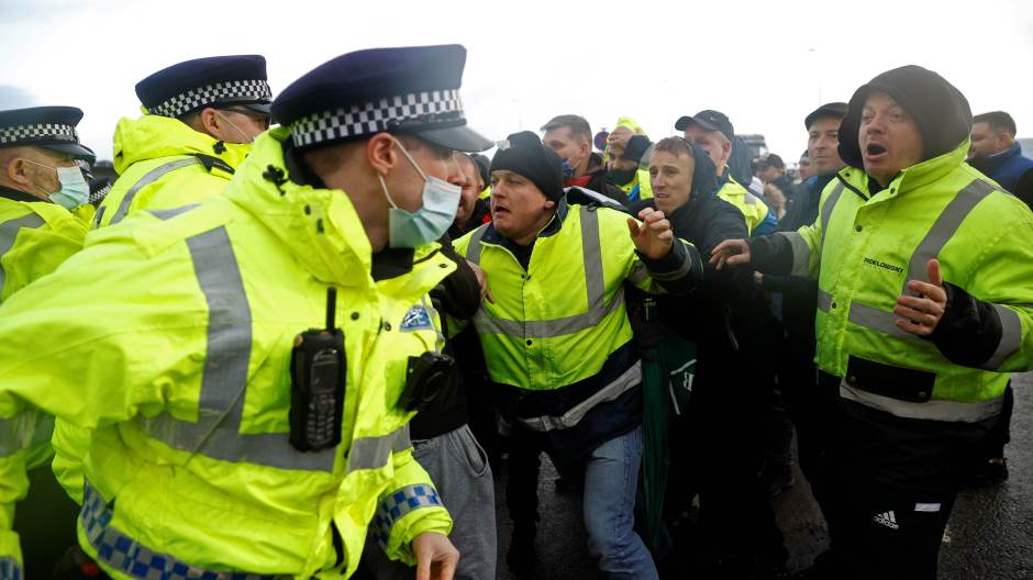 Возачите на камиони, кои се негативни за ковид-19, ќе можат да се качат на траекти кон Кале. Но нервозата кај возачите поради застојот во сообраќајот и деноноќното чекање резултираше со судири со полицијата во близина на Довер, при што тие бараа што побрзо да преминат во Франција.