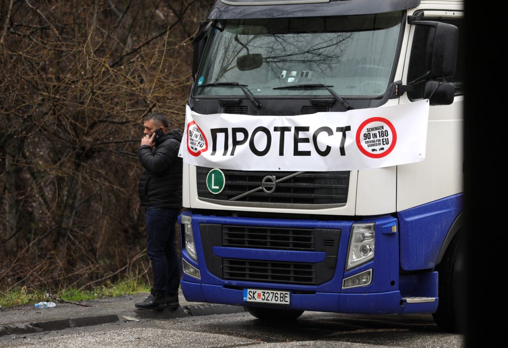 Товарниот сообраќај и натаму останува блокиран поради протестот на транспортните превозници од Западен Балкан кои од завчера поставија камиони на граничните премини кон земјите Шенген-зоната, барајќи Европската Унија (ЕУ) да го измени правилото за електронска евиденција за престој на превозниците во зоната.
