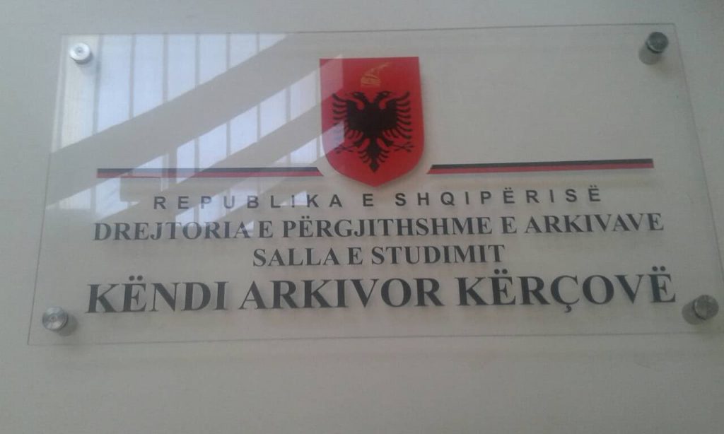 Таблата е испишана на албански јазик и на неа пишува Република Албанија, со грбот и знамето на соседната земја
