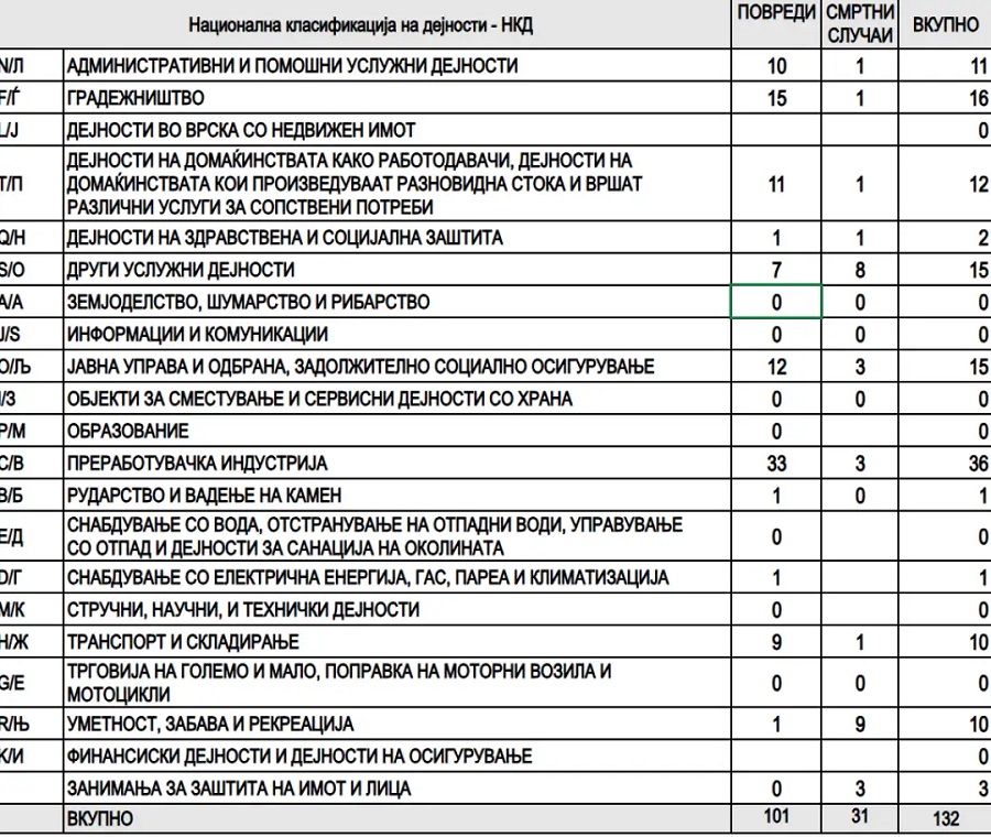 Лани во државава имало 132 несреќи при работа – 31 со смртен исход