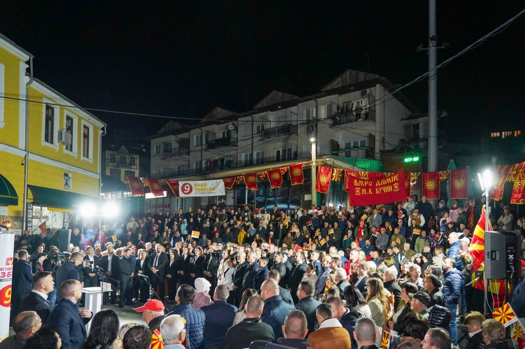 Мицкоски, повторно ја критикуваше опозициската партија и нејзиниот лидер, Венко Филипче, наведувајќи дека тој не ја води партијата, туку е само заменик на вистинскиот лидер, кој, како што рече, допатувал директно од Дубаи за да се вклучи во кампањата.
