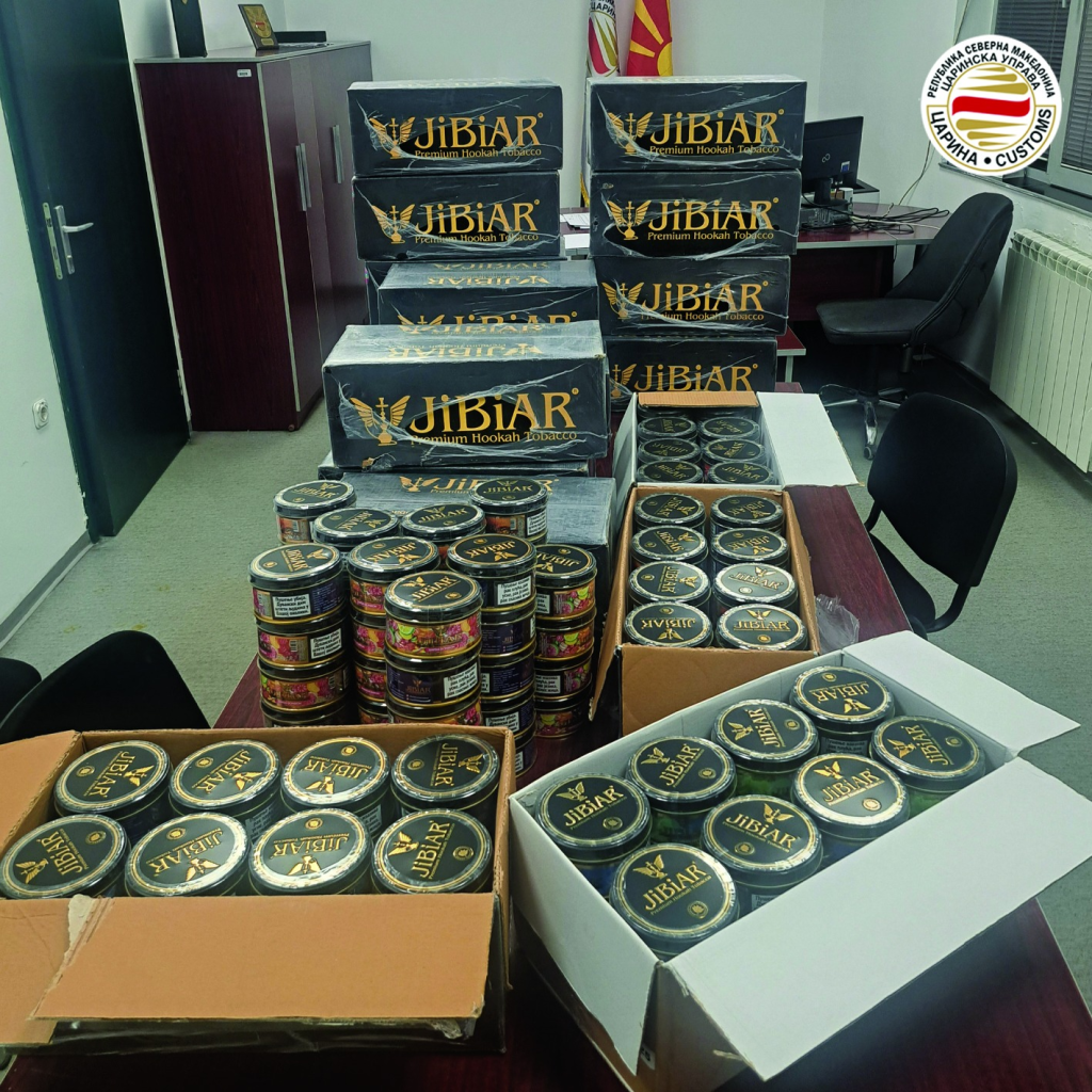 Царинската управа информира дека спречила шверц на вкупно 120 килограми тутун за наргиле, со вредност од 384 илјади денари. Тутунот, кој бил наменет за продажба на македонскиот пазар, бил запленет на Граничниот премин „Блаце“ на влез во државата.