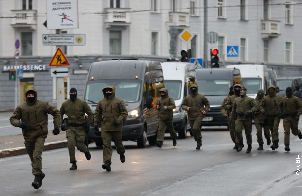Полицијата патролираше низ улиците на Минск со кучиња и распореди голем број водени топови.