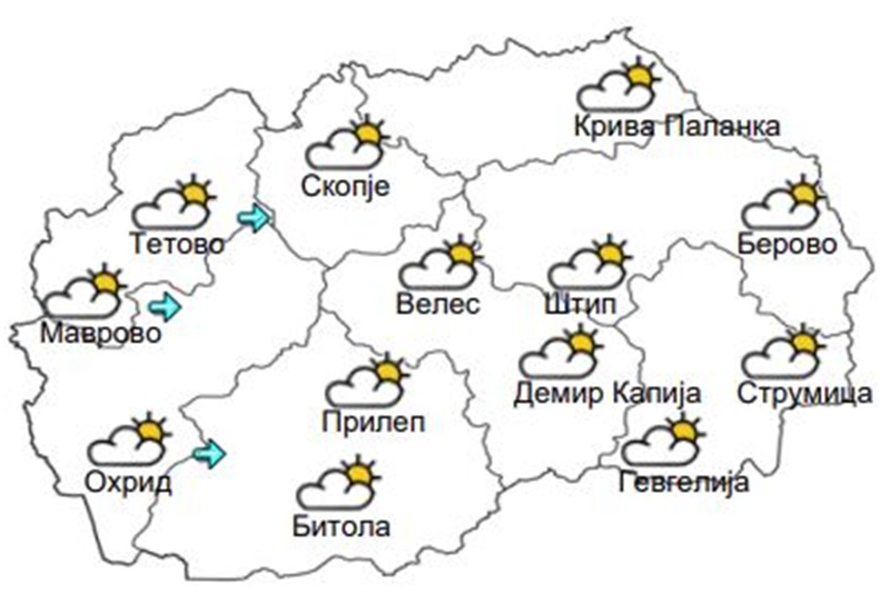 Наутро многу студено, преку денот променливо облачно со сончеви периоди и температура до седум степени