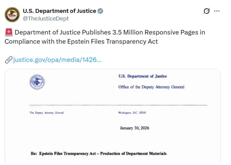 Повеќе од три милиони нови документи и фотографии поврзани со починатиот сексуален престапник Џефри Епстајн се објавени вчера од страна на Министерството за правда на Соединетите Американски Држави (САД). Ова претставува најголем број документи што владата ги споделила откако законот го наложи нивното објавување минатата година, пренесува Би-би-си.
