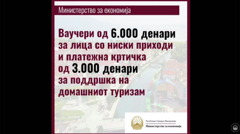 „Сите граѓани до крајот на идната недела да видат дали добиле ваучер, ако не, да го контактираат Министеството каде дополнително ќе се проверат нивните податоци. Подоготвката на платформата е почната и таа ќе биде пуштена во употреба на 15 јуни. Хотелиерите потоа ќе имаат рок 15 дена, до 30 јуни, да ја постават поунудата,