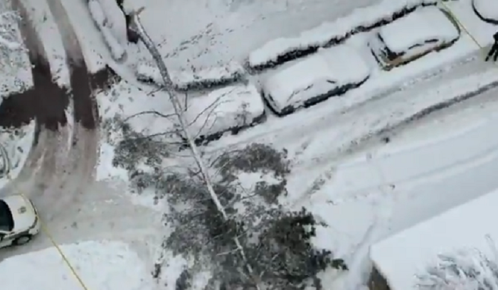 Како што пренесуваат босанските медиуми, дрвото паднало поради снегот што ги оптоварил неговите гранки.