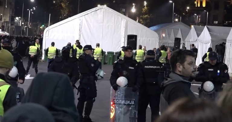 Ограда, полициски екипи и стражари во жолти елеци ги одделуваат поддржувачите на владејачката Српска напредна партија (СНС) … Продолжи со читање Полициски сили распоредени околу српскиот парламент каде што се одржуваат два собира