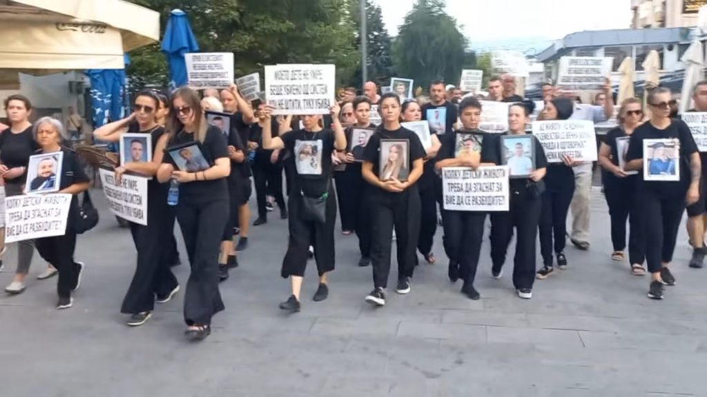 „Колку животи треба да згаснат за вие да се разбудите“, „Моето дете не умре, беше убиено од систем кој не штити, туку убива“, „62 животи – 62 иднини, 62 семејства со вечна болка“, „Правда и одговорност – нема мир без тоа“. Ова беа само дел од пораките на транспарентите што ги носеа роднините.