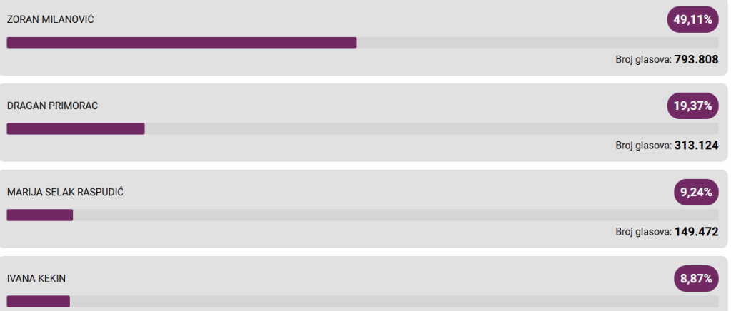 Претседателски избори во Хрватска: На Милановиќ му недостигаше малку да победи во првиот круг