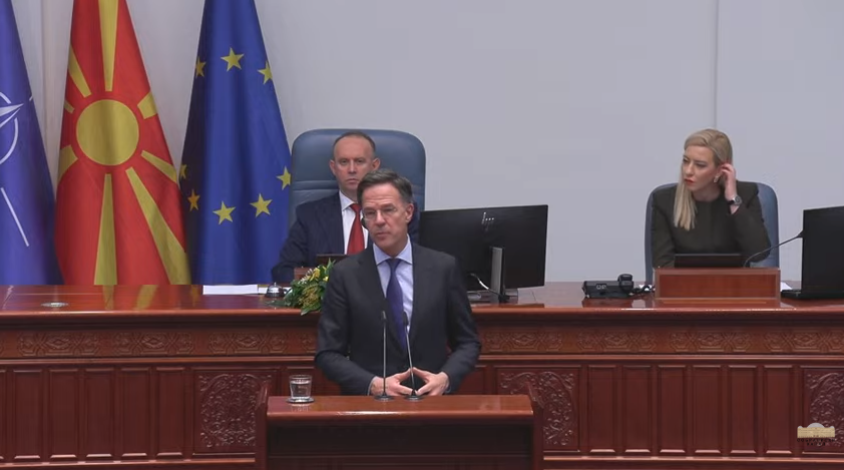 Без разлика од каде сте, од кој дел на трансатлантската алијанса доаѓате, стоиме заедно со вас и заедно ќе бидеме заштитници на мирот и на безбедноста на нашите нации. Северна Македонија има придобивки од ова секојдневно. На пример, авионите од Грција и од Италија патролираат на вашето небо за да бидете безбедни. Ова праќа јасен сигнал дека никој не е сам во НАТО, вашите пријатели и сојузници се секогаш со вас, секогаш кога се соочуваме со насилен свет, истакна денеска генералниот секретар на НАТО, Марк Руте, во обраќањето пред пратениците, пред премиерот Христијан Мицкоски, првите луѓе на институциите, верските заедници и дипломатскиот кор во земјата.