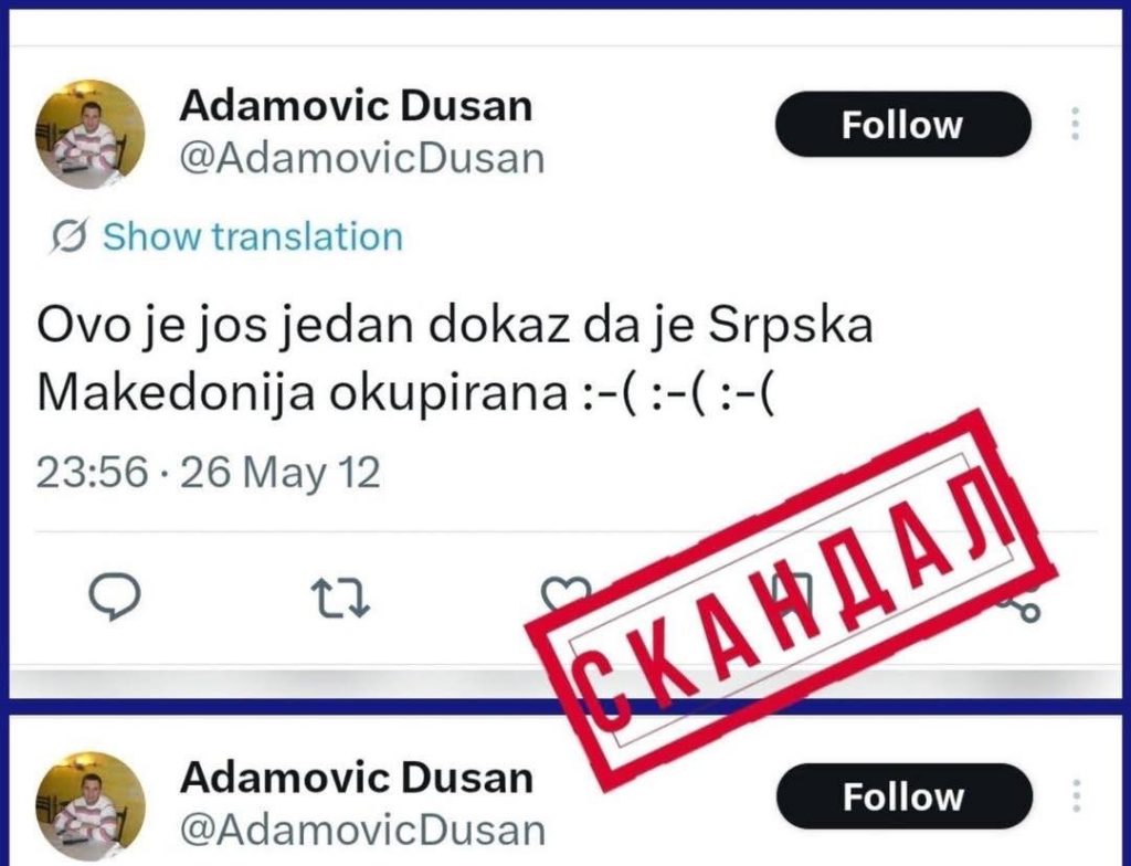 СДСМ бара одговор зошто човек што напишал на Икс дека „српска Македонија е окупирана“ е почесен македонски конзул во Србија