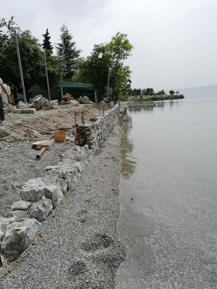 Вчера од невладината „Охрид СОС“ споделија фотографии од ѕидот кој речиси навлегува во езерото, и покрај забраната за градба и покрај Планот за управување со Охридскиот Регион, кој според власта требаше да стави крај на урбаниот хаос во целиот Охридски Регион.